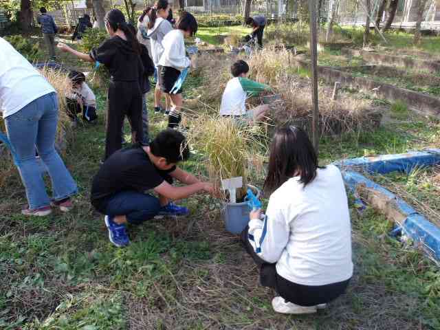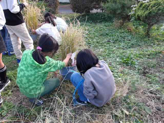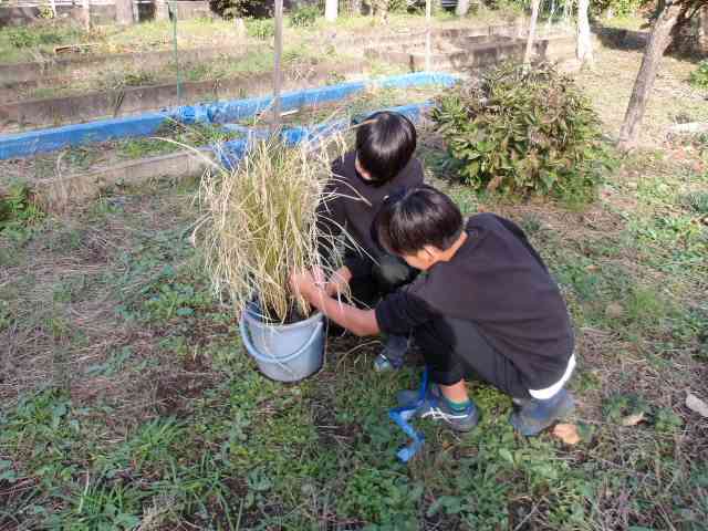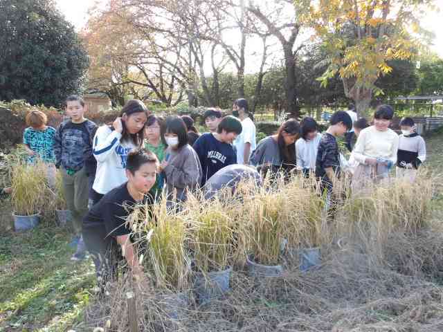 5月に植えたバケツ稲の収穫を行いました。 協力しながら収穫をする様子が見られました♪