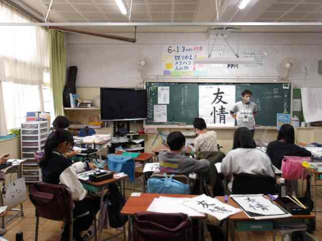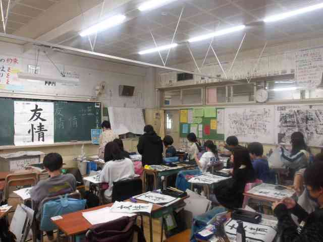 書道の学習では「友情」を書きました。 子供たちは集中して取り組んでいました♪