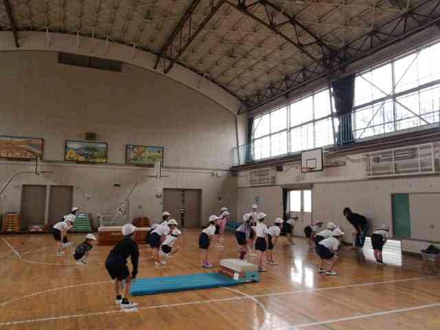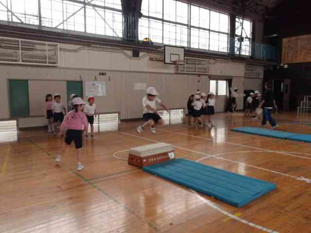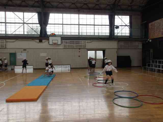 跳び箱やフラフープを使った4つのコースで体を動かしました。 子どもたちが楽しそうに活動する様子が見られました♪